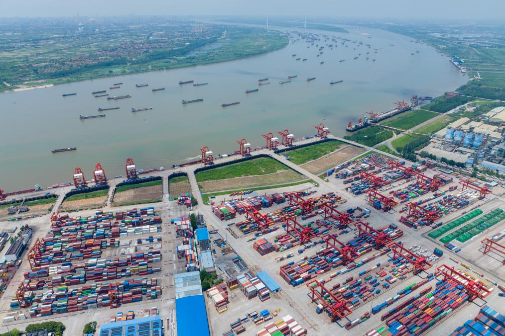 武漢陽(yáng)邏港一期碼頭(2023年7月5日攝,無(wú)人機照片)。新華社記者伍志尊攝