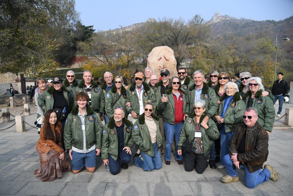 2023年10月29日,飛虎隊老兵莫耶一行人在北京八達嶺長(cháng)城合影留念。當日,美中航空遺產(chǎn)基金會(huì )訪(fǎng)華代表團成員陸續抵達北京。新華社記者 任超 攝