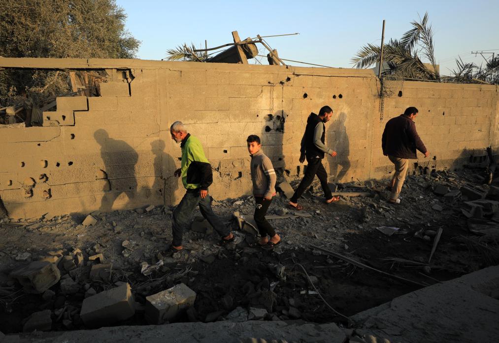 11月23日,在加沙地帶南部的汗尤尼斯,人們從以軍襲擊后破損的街頭走過(guò)。新華社發(fā)(亞西爾·庫迪攝)
