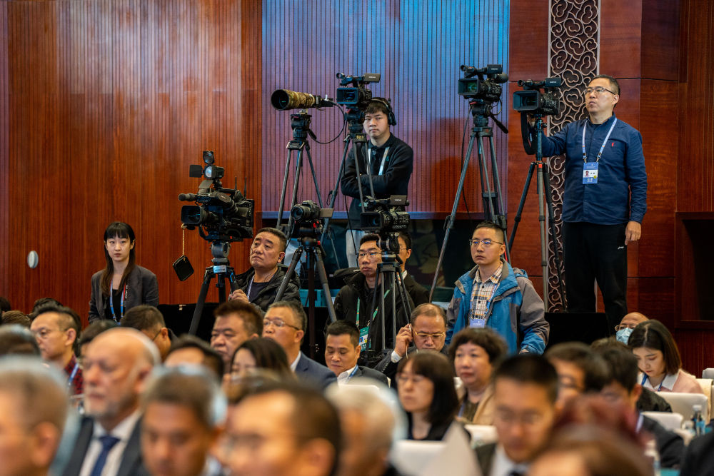 2023年12月5日,記者在云南昆明采訪(fǎng)第五屆世界媒體峰會(huì )(云南分會(huì )場(chǎng))暨第二屆大象國際傳播論壇開(kāi)幕式。新華社記者 胡超 攝