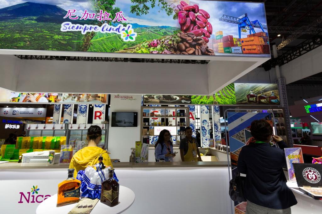 圖為11月6日在第六屆進(jìn)博會(huì )國家展拍攝的尼加拉瓜展臺。新華社記者 高巍 攝