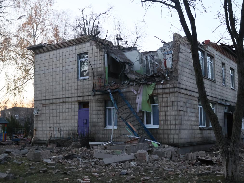 烏克蘭空軍11月25日在社交媒體發(fā)文說(shuō),俄羅斯當天凌晨出動(dòng)75架攻擊型無(wú)人機對烏發(fā)動(dòng)空襲,空襲主要方向是烏首都基輔市。圖為基輔市一棟建筑屋頂被無(wú)人機碎片擊中。新華社發(fā)(羅曼·佩圖什科夫攝)