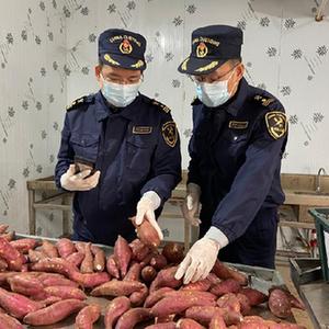 12月11日,水口海關(guān)關(guān)員對進(jìn)口的越南鮮甘薯進(jìn)行現場(chǎng)查驗。(水口海關(guān)供圖)
