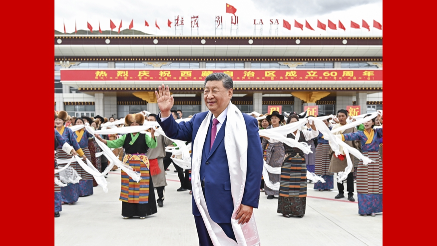 習近平率中央代表團抵達拉薩出席西藏自治區成立60周年慶?;顒?dòng)