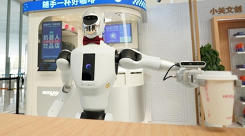 一款蓋博特機器人在為“顧客”送咖啡